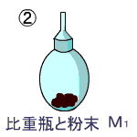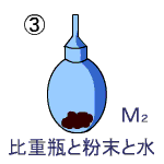 A これに,未知試料(たとえば,砂・散弾など)を入れたときの重さをMとすれば,粉末の重さはM-となる。