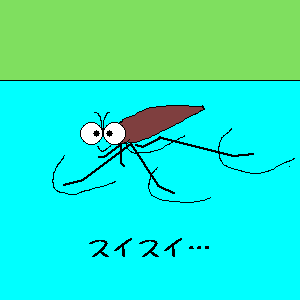 アメンボウは良くこの絵の様にすいすいと泳ぐように水面を移動しています。アメンボウが水面に浮いているのは,水の表面張力によるものなのです。